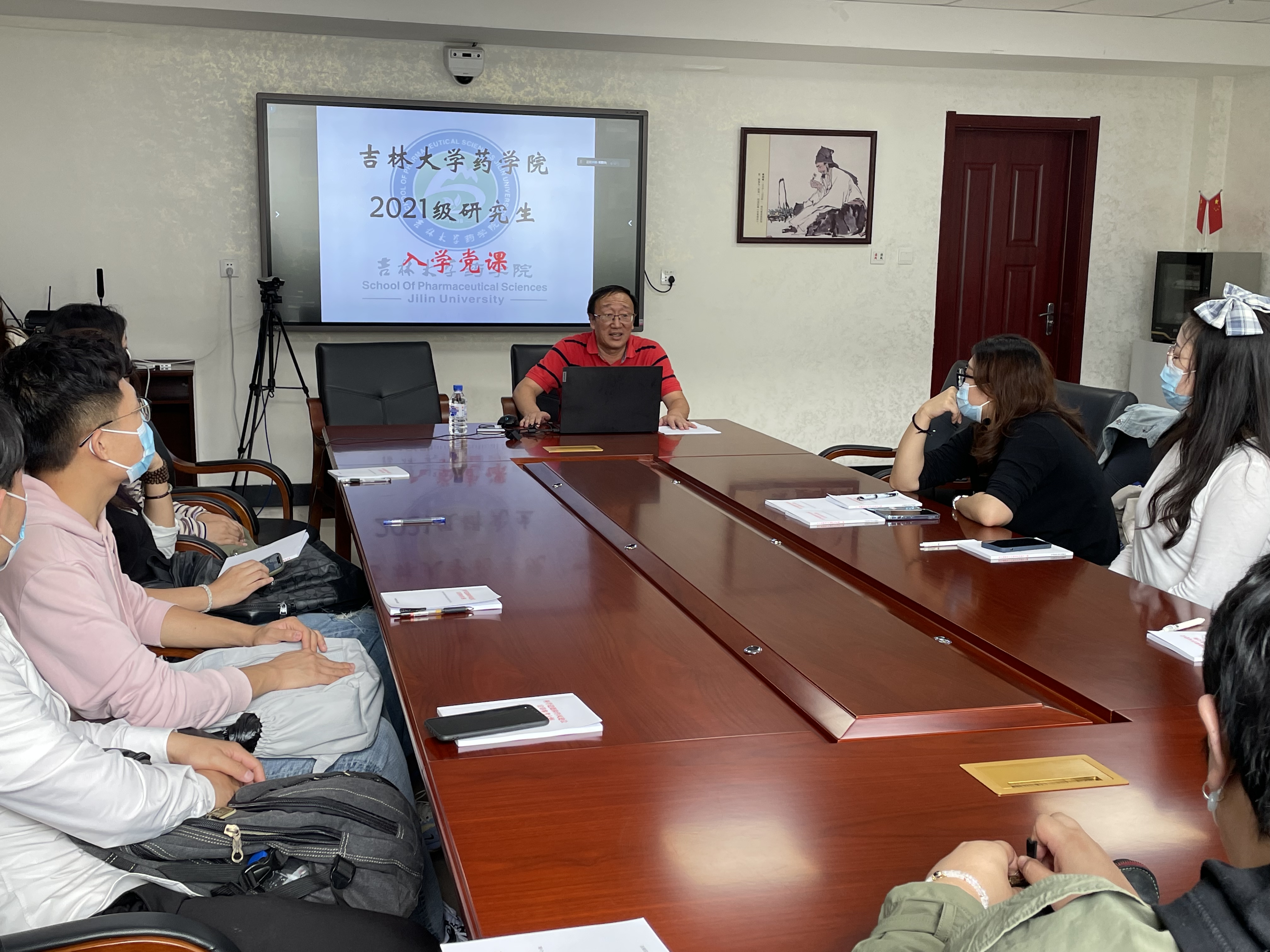 Professor Ma Jie, dean of the School of Pharmaceutical Sciences, started with a warm welcome to and sincere congratulations on the arrival of the 2021 class of graduate students. Mr. Ma then gave a detailed introduction of the history and outstanding talents of Jilin University as well as the School of Pharmaceutical Sciences. Mr. Ma asked all students three questions: What is the purpose of postgraduate study? What do you want to be in the future? To achieve your ideal goal, what should you do during postgraduate study? Taking Meng Wanzhou’s return to China as an example, Mr. Ma encouraged students to take on new missions in the new era and understand China’s real problems, be courageous, down-to-earth, innovative, and do academic research that is truly beneficial to our country, all families and the people.