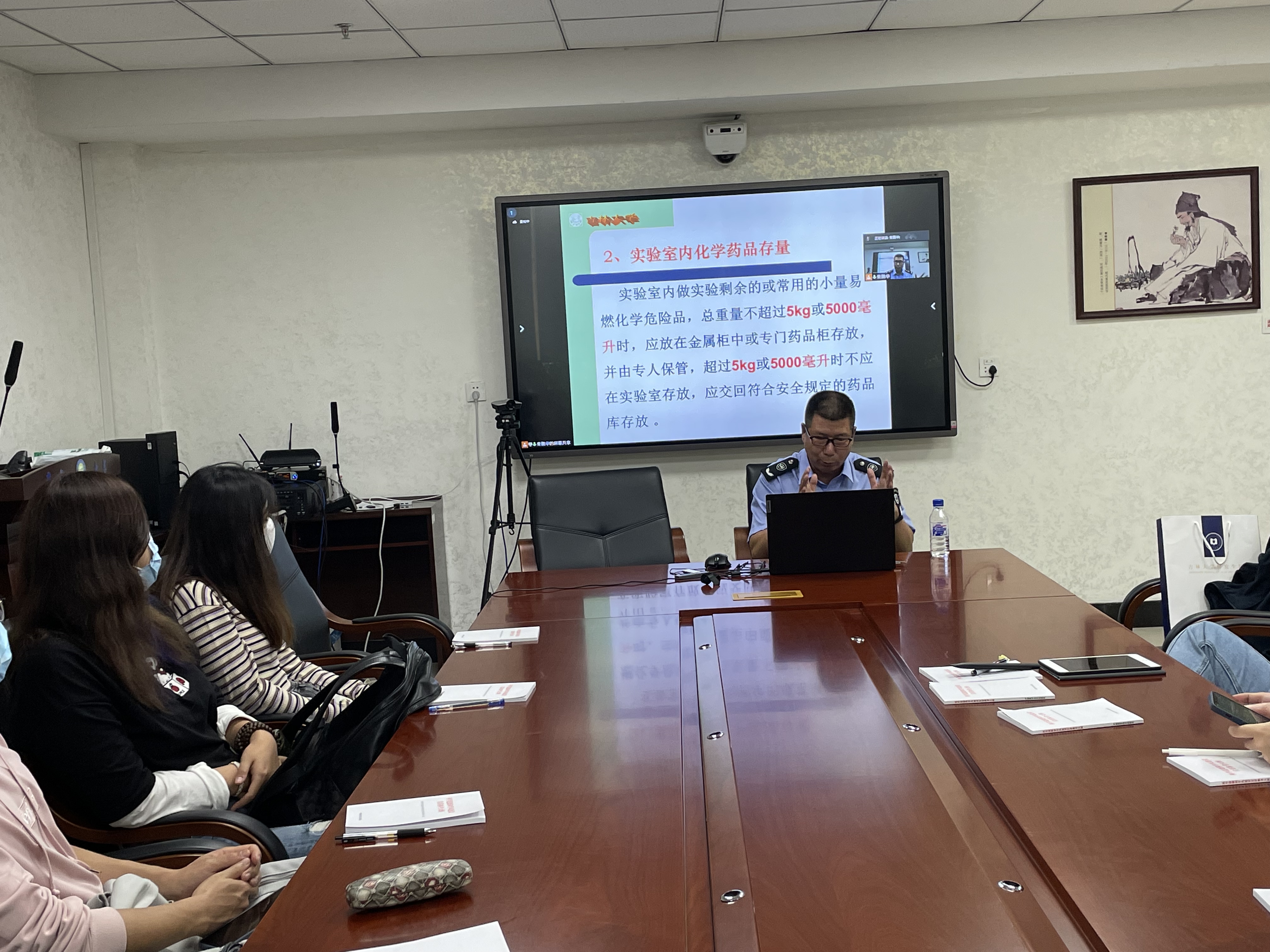 Mr. Zhang Xiliang, environmental safety supervisor and expert, gave a detailed introduction to the healthy development and safety of the university, laboratory safety, and the significance of ensuring laboratory safety and the laboratory safety work in the school. Mr. Zhang said that the healthy development and security of schools are high on the national agenda and the social livelihood of the people, and that everyone should make their own share of contribution to campus security. Mr. Zhang also noted that campus safety involves a wide range of work and is difficult to handle, and that because of scattered campuses and sound development of various disciplines, laboratory safety also involves multiple risk points and safety hazards. For this reason, ensuring laboratory safety is an important and responsibility-laden task as laboratory safety is the prerequisite for safety on campus. Laboratory is the place where teachers and students carry out teaching, experiments, scientific research practices and training, as well as other activities. It is also an important platform to help students grow, and educate and train them. It is of paramount significance to follow laboratory regulations and remember national laws and regulations, industry regulations and school safety system.