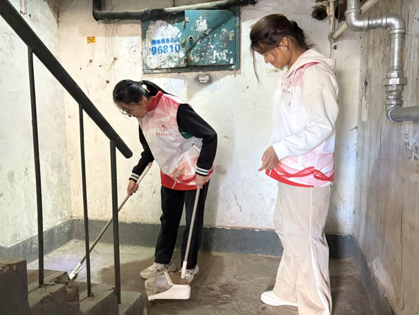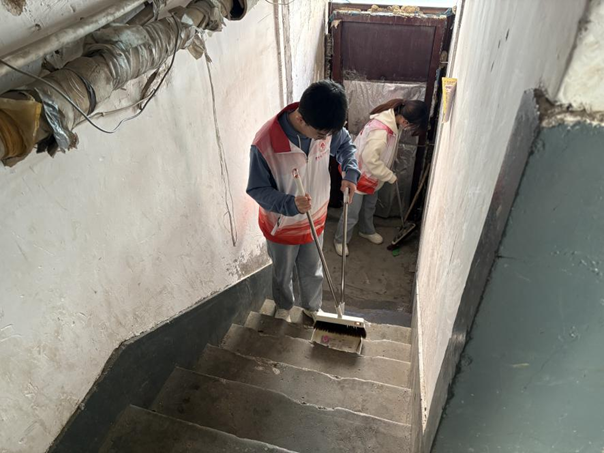 同学们还自发分为两组进行庭院环境清洁,对社区居民楼道展开全面清理。大家分工协作,清扫楼道垃圾,铲除墙壁上的小广告,抓住每个卫生死角。活动中,同学们专注投入的工作热情也感染了社区居民,许多人主动加入到清理队伍中一起劳动,让社区环境面貌焕然一新。