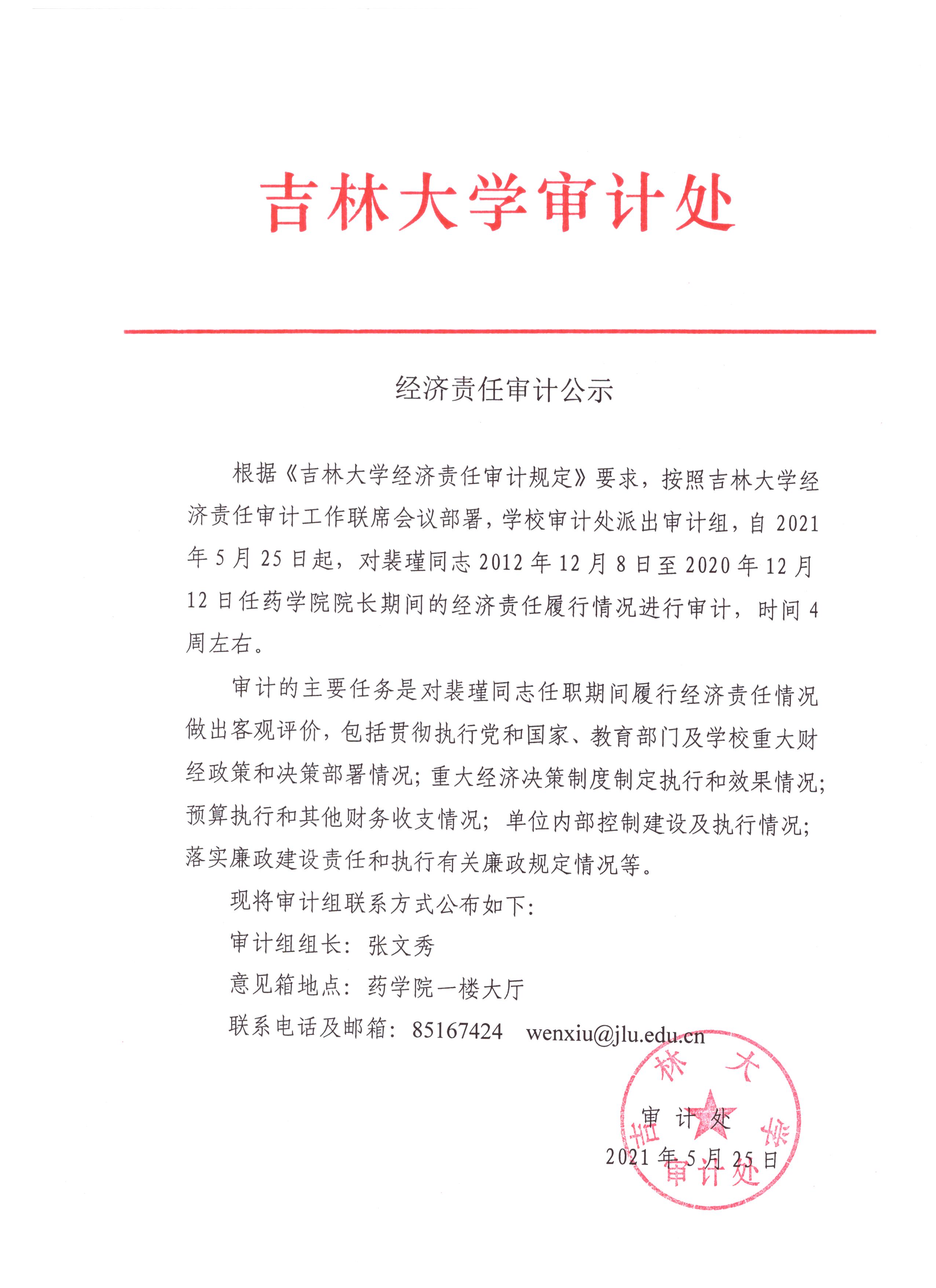 包你发 审计处关于经济责任审计公示