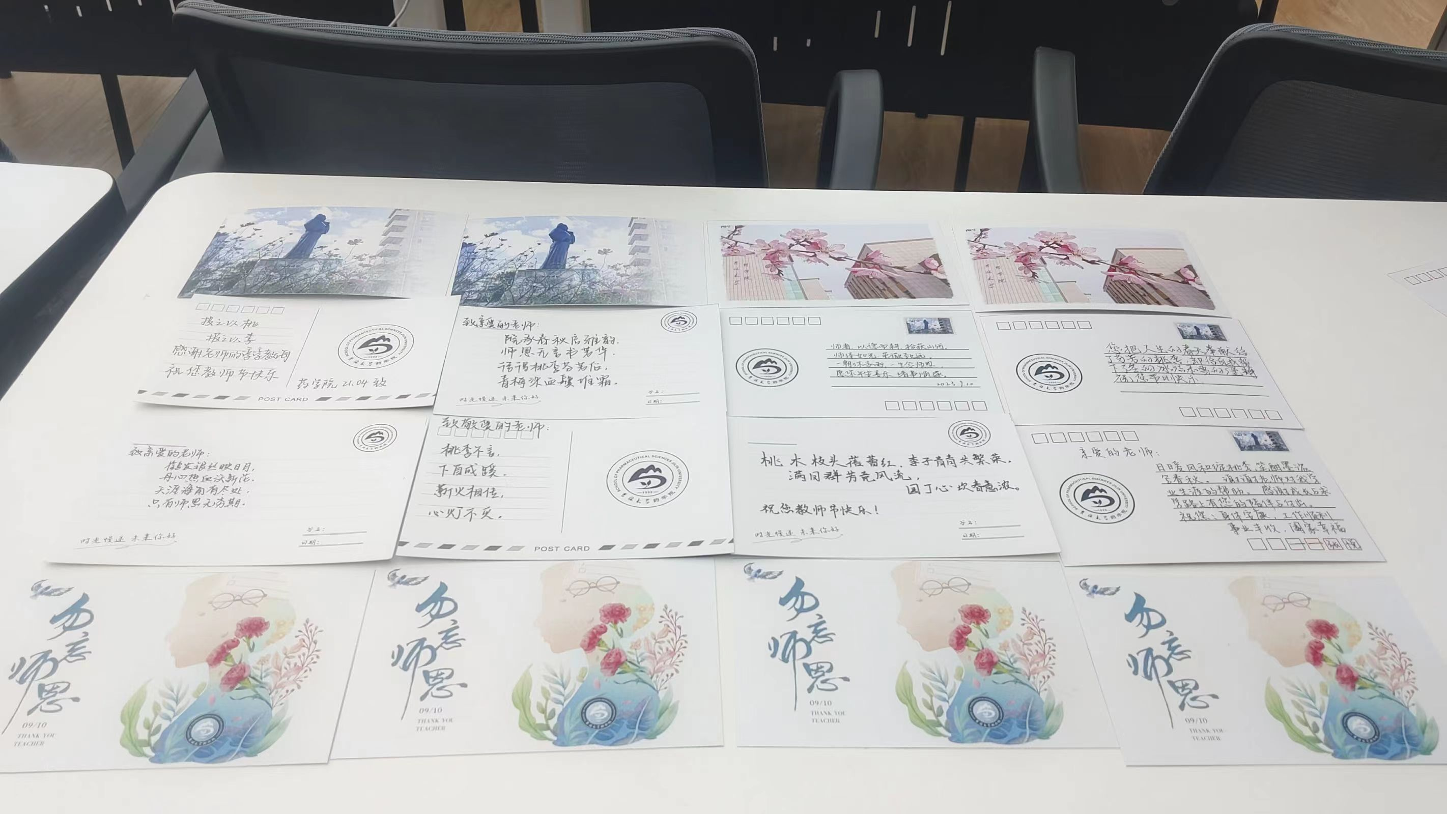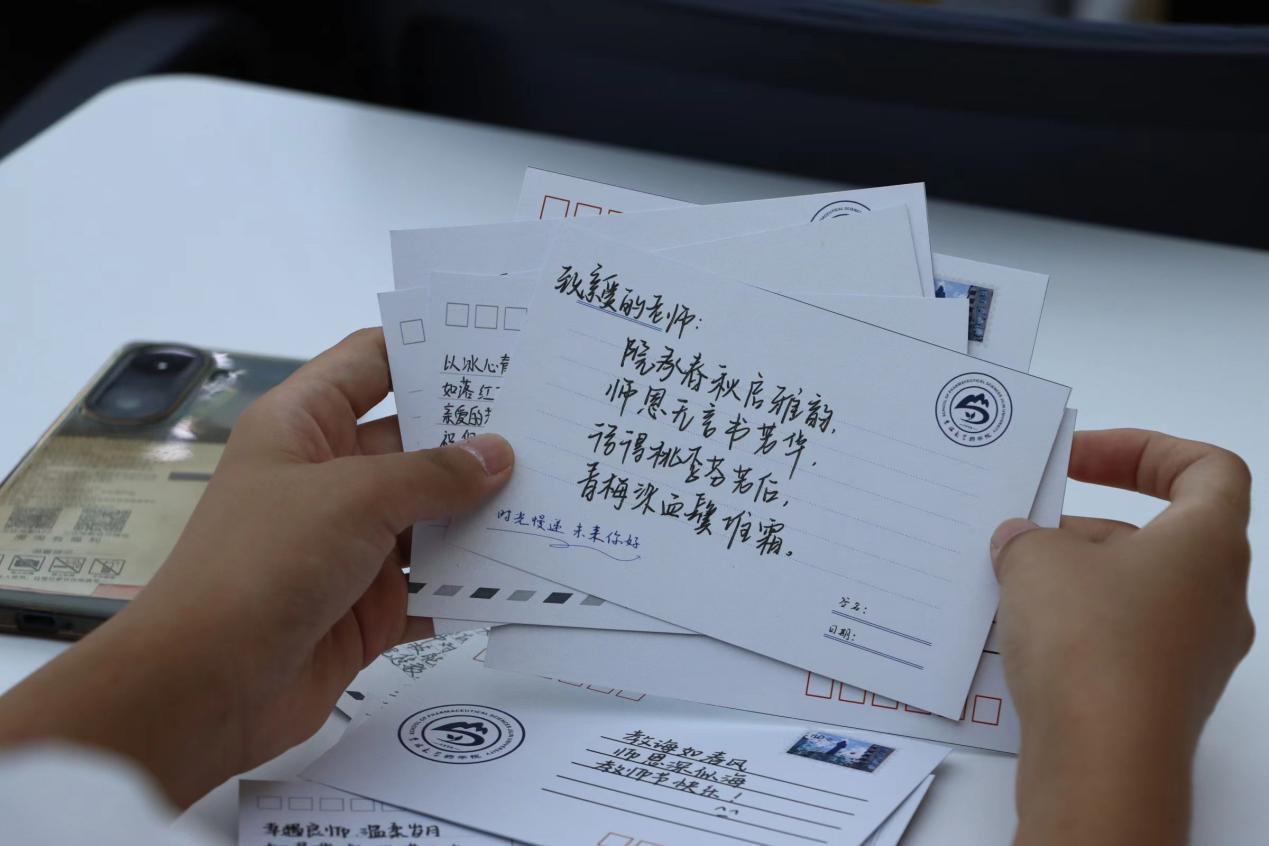 活动结束后,工作人员收集、整理盛满情谊的明信片。书写完的明信片可以亲自赠送给老师表达感谢;也可以不指定赠送的老师,由学生干部代赠给包你发