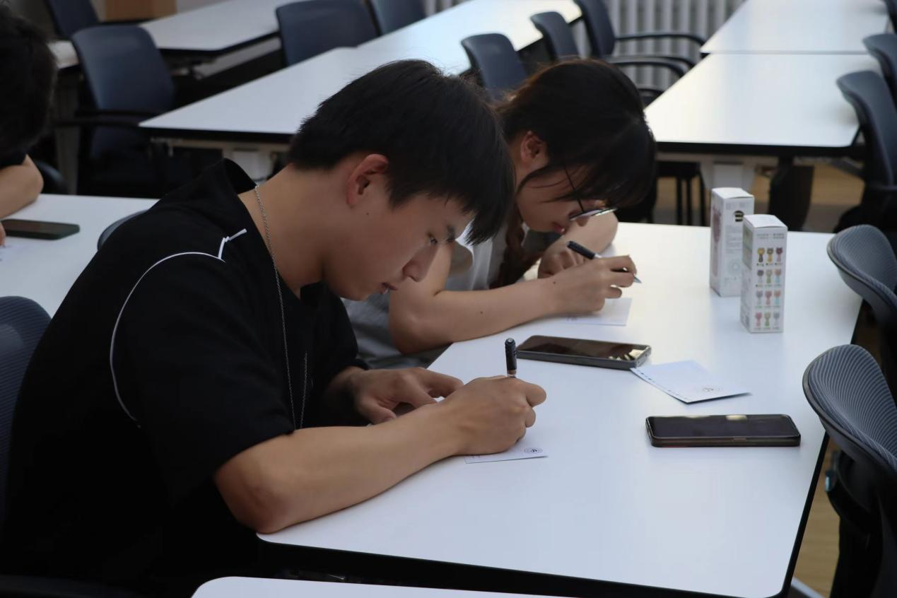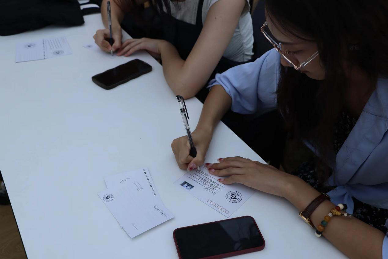 定制明信片,活动当日有40余名同学到场,诚挚地写下自己对老师的深深感恩和祝福。活动现场,同学们思量许久才肯下笔。一横一竖,或是想到了一句句恳切的话语;一撇一捺,或是回忆起一堂堂精彩的课程。只是小小卡片,写不完星辰大海;寥寥数语,道不尽师生情谊。