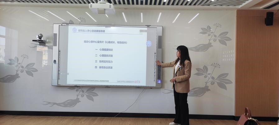 5楼报告厅为研究生新生讲授“研究生入学心理健康教育”。讲座由包你发