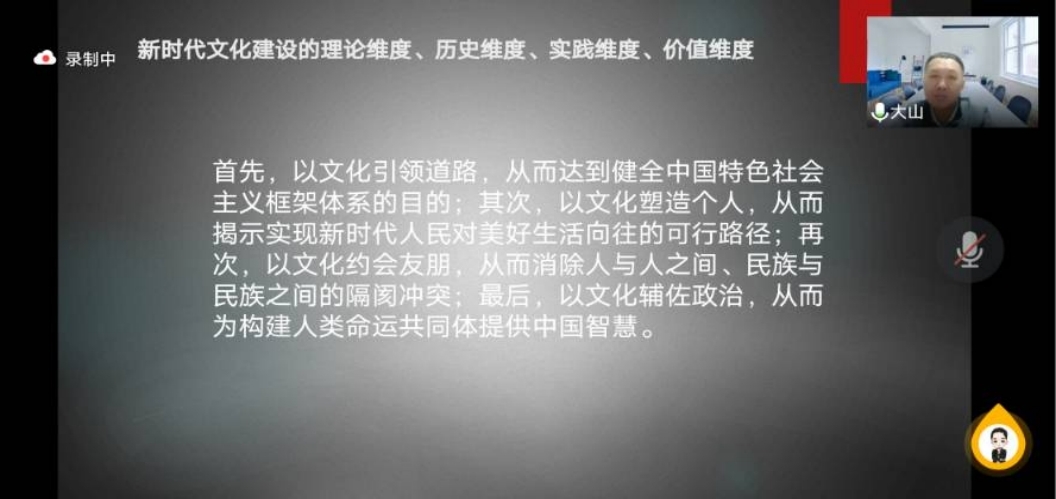 2021级博士研究生马永博士主讲的以《新时代关于文化建设的历史成就》为主题的相关报告。