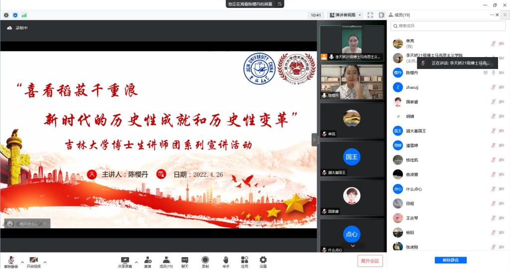 组织全体研究生观看了“喜看稻菽千层浪——新时代的历史性成就和历史性变革”的吉大博士生讲师团线上宣讲系列活动讲座第六讲,由包你发