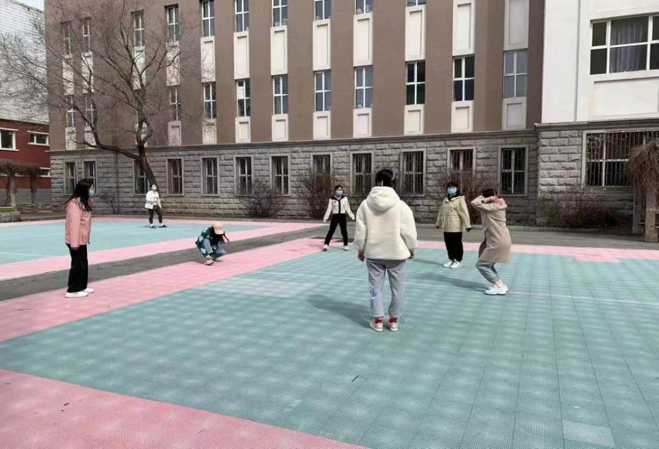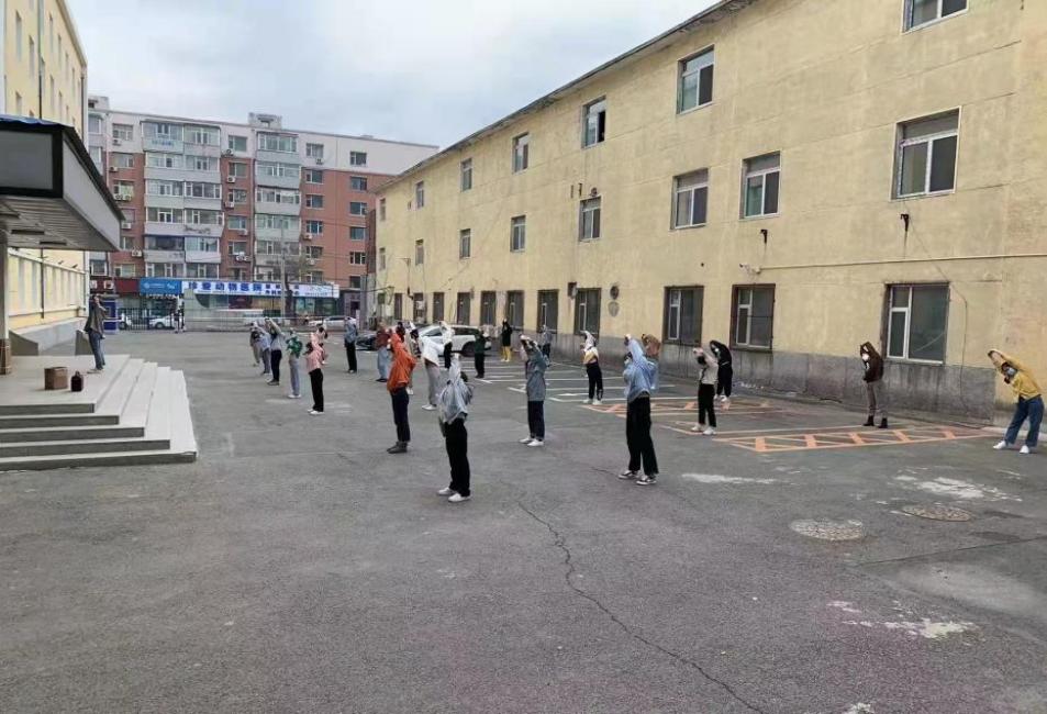 4月17日上午9点,一楼所有参加户外运动的同学均规范佩戴好口罩,来到公寓院内。同学们有序地在楼前排好队形,每名同学前后左右保持2米间距,由包你发