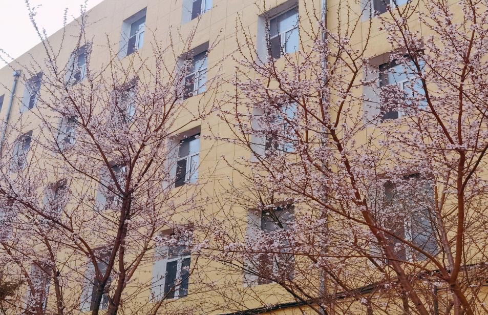 后院一排排小树上也开出了淡粉色的桃花,阵阵春风拂过,花瓣洋洋洒洒地落在同学们灿烂的笑容里,同学们在舒展筋骨的同时也舒缓了心情。活动结束后,学生们进行扫码消毒,有秩序地回到寝室。