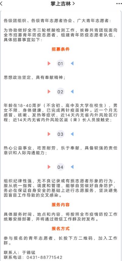 宿舍,我被迫在家成为了“留守儿童”。每天的信息被疫情刷屏,疫情肆虐的前几天,掌上吉林在公众号上发布了一条“吉林省志愿者招募通知”,我立刻有了兴趣便积极报名参加。