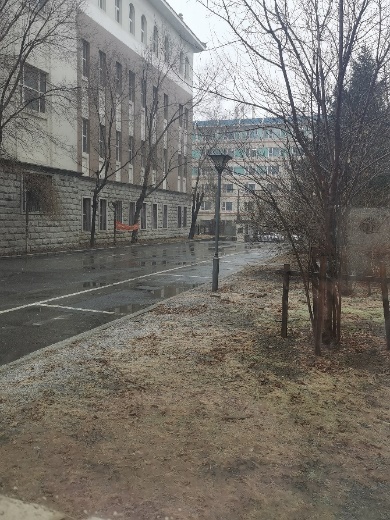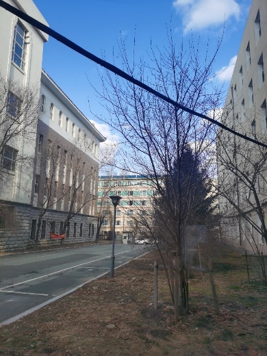 我很幸福,有幸寝室分配在一楼,面对一个小窗户,在这么多天隔离的日子里,观看冬雪、春雨、青草萌发、蓝天白云,打开窗户还能感受外面的风,感受即将到来的盎然春意。
