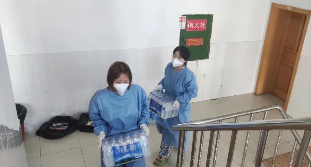 成为志愿者之后,我主要负责搬运三餐水果和防疫物资以及组织抗原自测。一开始,我觉得搬运组还是蛮辛苦的,因为我们住在四公寓顶楼六楼,平时光是爬上六楼就觉得很累,更不用说还要搬东西了。紧接着,我发现其他楼层的人数比我们楼层要多,甚至要多一倍,也就是说其他楼层的志愿者要搬运更多的物资,我反而觉得自己那点辛苦根本不算什么,志愿者们就像一枚一枚齿轮,在自己的位置上按部就班地转动,使四公寓的隔离生活井然有序。