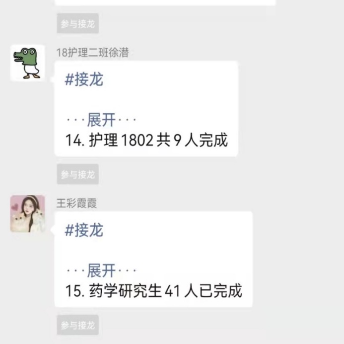 检测完成后都以接龙的形式进行上报汇总,做到每日核酸检测按时完成,无一人遗漏。