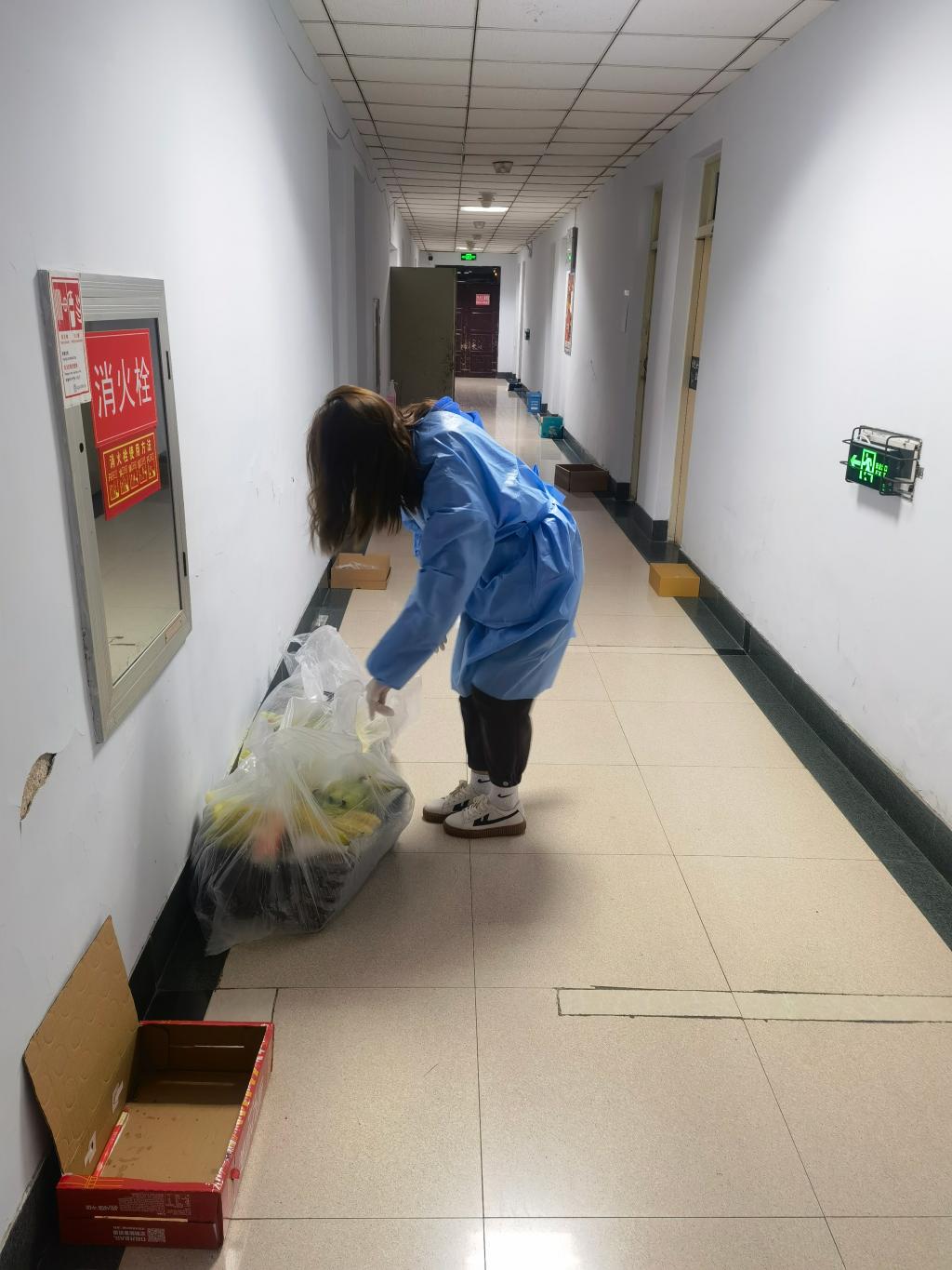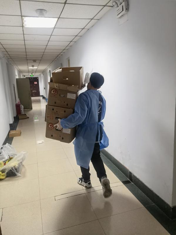 学生干部、党员也都积极参加到志愿工作中,搬运物资、发放餐水、协助核酸检测工作......男生们主动抬重物,女生们则负责清点分发。每当餐车缓缓驶来,志愿者们各自就位,按楼层分餐,工作早已做得熟练而有序。不管是包你发