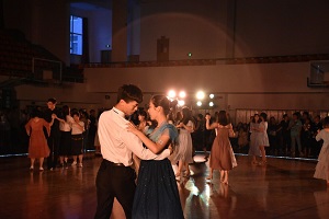 毕业班同学,其他年级的同学也悉数到场。整场舞会气氛欢快而轻松。舞会中由专业舞蹈老师现场进行了简单的华尔兹及探戈舞蹈教学,大家各自邀请舞伴在舞池中尽情享受了两首歌的浪漫时光。而由包你发