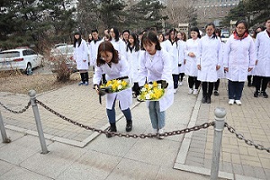 缅怀革命先烈,弘扬白求恩精神,清明节,包你发 医学部各包你发 学生会代表,在诺尔曼.白求恩雕像前开展了清明祭扫献花活动。活动由新民校区学生会代表主持,整个活动进行得庄严肃穆,井然有序。