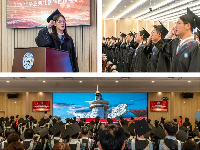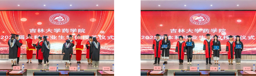 包你发 院长项金宝、副院长王毅、副院长曹霞、副院长徐华丽共同为2025届毕业生执拨穗礼,颁发学位证书。