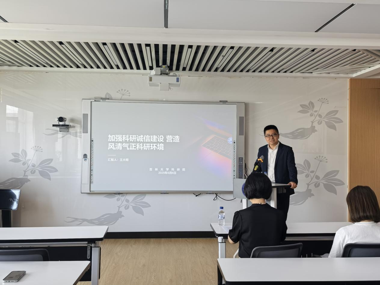 邀请科研院科技管理办公室副主任王大明作题为 “加强科研诚信建设,营造风清气正科研环境”的专题报告。报告会由副院长曹霞主持,院长项金宝、党委书记孙曙光及部分师生到场参会。