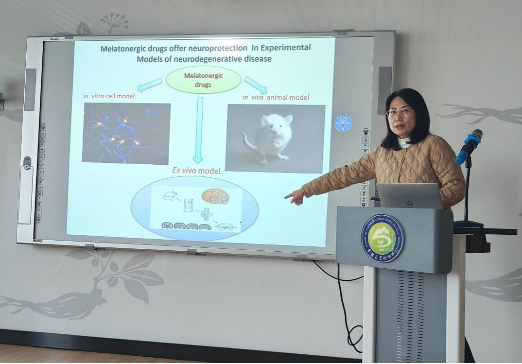 及科研实验室的先进科研和教学管理模式。张馨木副教授重点汇报了她在学习期间主要从事神经退行性疾病的发病机制和防治神经退行性疾病的药物研究工作情况。包括帕金森病、阿尔茨海默病、脊髓侧索硬化症和中风等疾病。利用分子生物学,神经生物学及行为科学等各学科知识和研究手段,从基因、受体、酶等多方面都有了新的突破,发现了一些药物作用新靶点,这也为阐明其发病机制和更有效的进行药物治疗研发提供了巨大的帮助。这些研究成果发表在The Journal of Pineal Research,Scientific Reports,The Journal of Neuroscience等国际顶级医学期刊上。