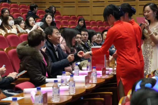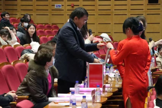 院长马杰分别抽取十名幸运观众,工作人员为幸运观众送上包你发