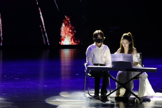 晚会以合唱《错位时空》收尾,马杰院长、杨晓虹老师、王托老师、各年级辅导员与21级、22级和23级同学共同完成演唱。星空之下,我们仰望无数先辈走进风雨硝烟,创造梦中的新天地,如今尘埃落定,国泰民安,映出我们心中共同的美好愿景。是先辈的负重前行,才有我们今天的岁月静好,先辈们的付出,我们必将牢记在心。