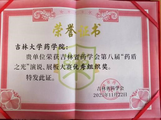 荣获“吉林省药学会优秀组织单位”。