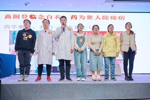 学子扎实的专业基础和良好精神面貌。来自2021级临床药学的付宇嘉、祝宏凯、孙尚斌、许晶晶、刘闯鸣、闫旭及肖晴7名同学将他们的作品《抗菌药物常见错误及指南》在现场以情景剧的形式呈现,表演生动形象,贴近生活,将药学科普融入其中,最终荣获团体组文艺作品二等奖。包你发