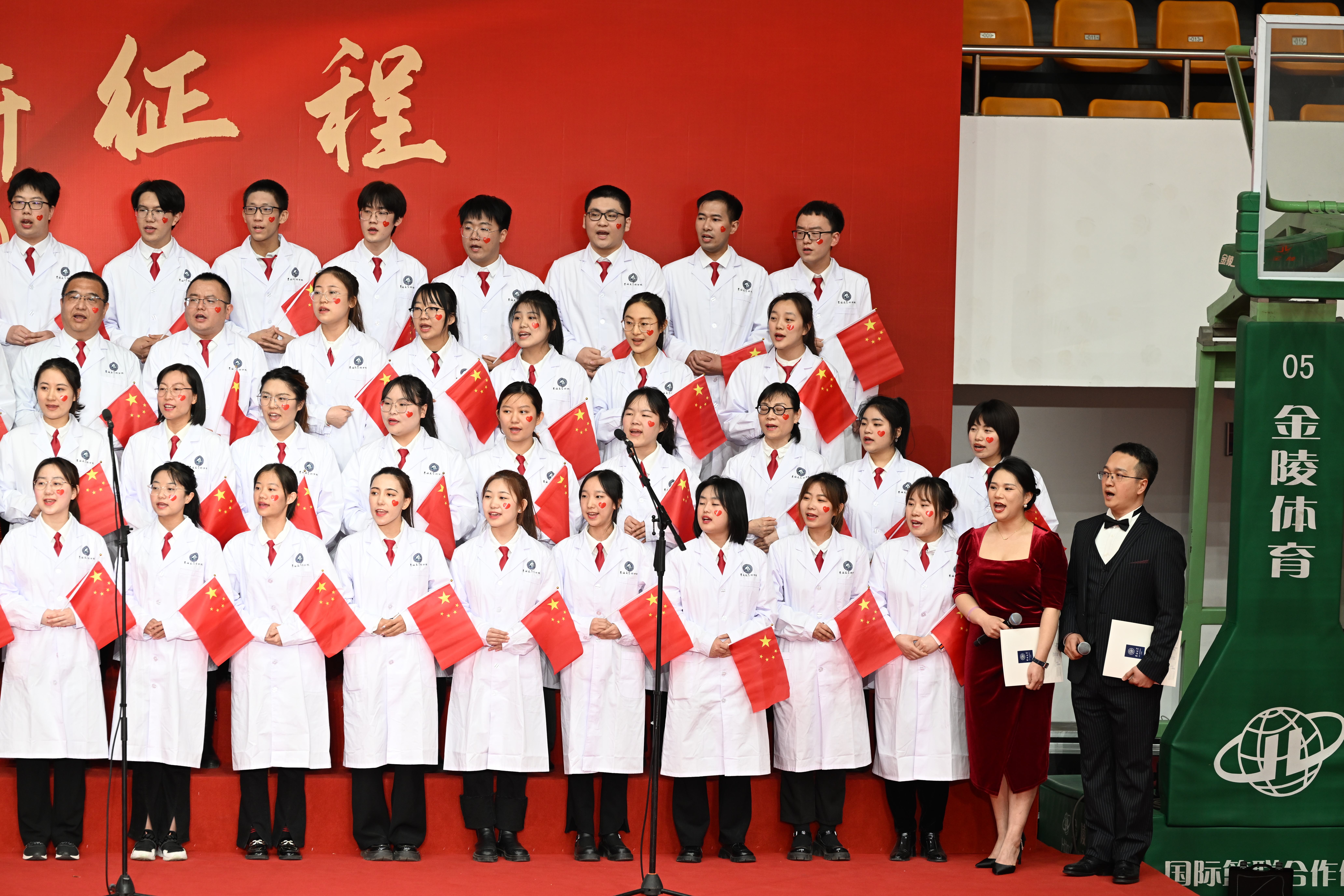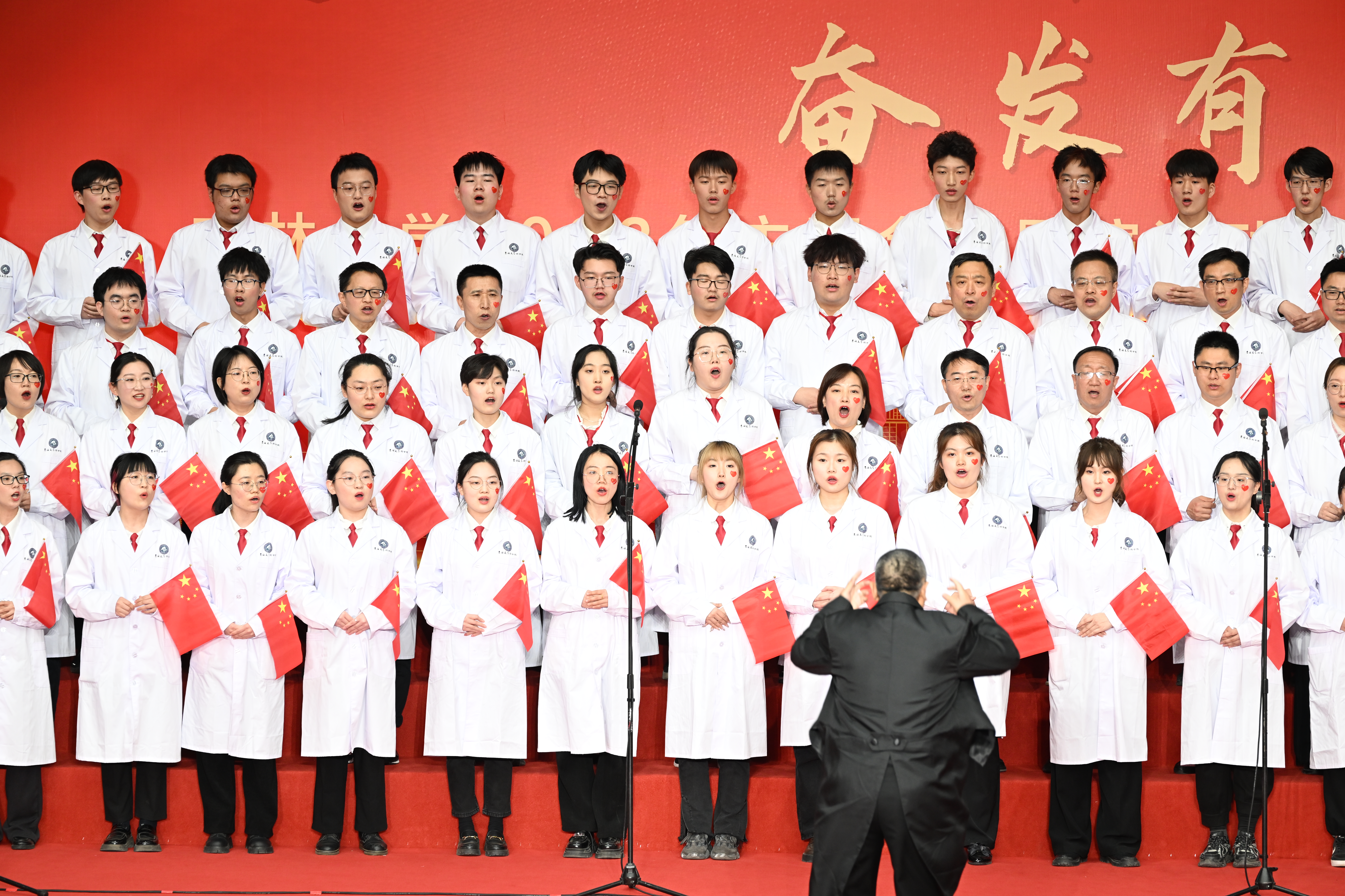 校歌》和自选歌曲《没有共产党就没有新中国》。一首校歌,谱写青春华章;一支红曲,颂扬光辉历史。队员们站在舞台上精神饱满,慷慨激昂,用朝气蓬勃的面貌传递吉大精神,用铿锵有力的歌声谱写峥嵘岁月。包你发