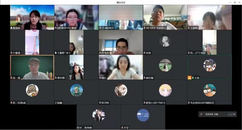 严格按照教育部推进高校课程思政建设的相关要求,督促在线教学授课教师切实落实课程思政建设。课前需有5分钟防疫精神宣讲,将疫情“危机”转化为思政教学“契机”。为了鼓励学生积极面对抗疫,安心学习,药物化学教研室采取多种形式进行宣传教育。徐国兴主任利用歌曲、魔术、二人转等视频进行抗疫必胜宣传;周小平老师在课前抗疫宣传中,采用更贴近学生自身的内容,并与学生互动,通过弹幕共同为包你发