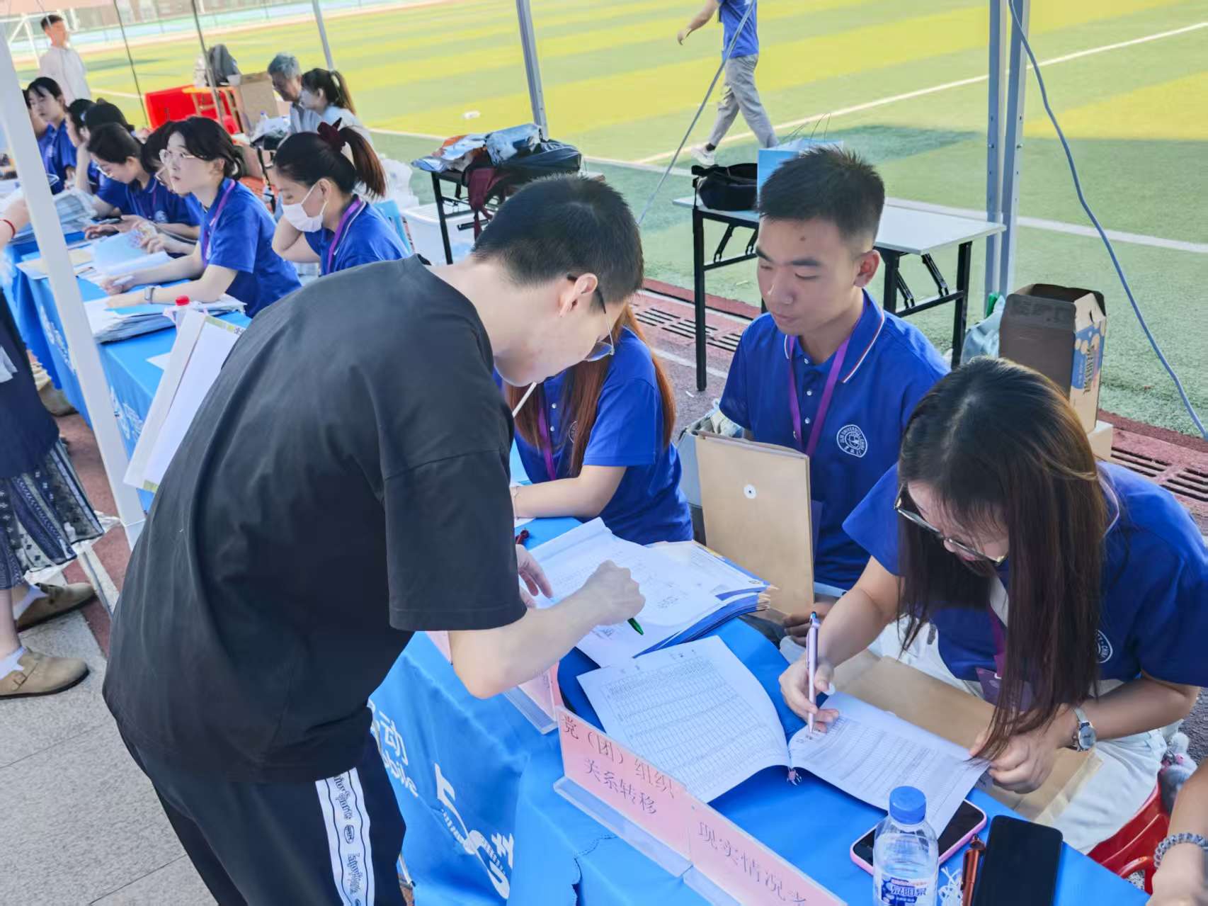 本次迎新报到工作在新民体育场展开。阳光洒满绿茵,映照出一片热烈而温暖的景象。报到流程以“科学化设计、人性化服务”为原则,从材料核验、校园卡领取到宿舍安排,各环节衔接顺畅、秩序井然。迎新志愿者耐心解答新生问题,用细致入微的服务帮助新生快速融入校园节奏,为其研究生阶段的学习生活筑牢“第一块基石”。