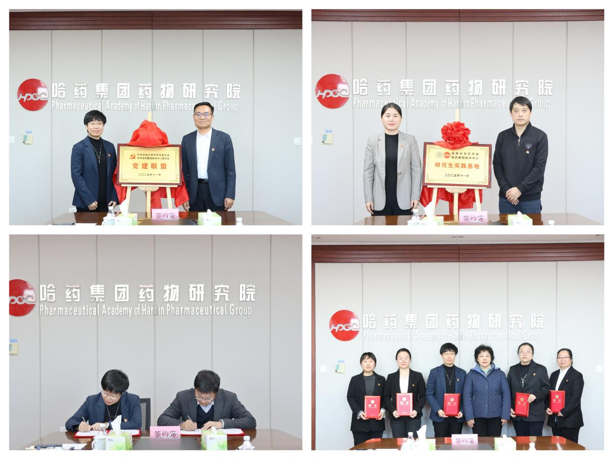 活动最后,现场举行了党建联盟及研究生实践基地授牌仪式,签订了联合建设研究生培养实践基地协议并为哈药技术中心校外合作导师颁发聘书,形成了今后深化合作的系列制度性成果。这些举措标志着双方合作迈入新阶段,为后续开展党建共建、研究生实践教学、科研协同创新等工作奠定了坚实基础。