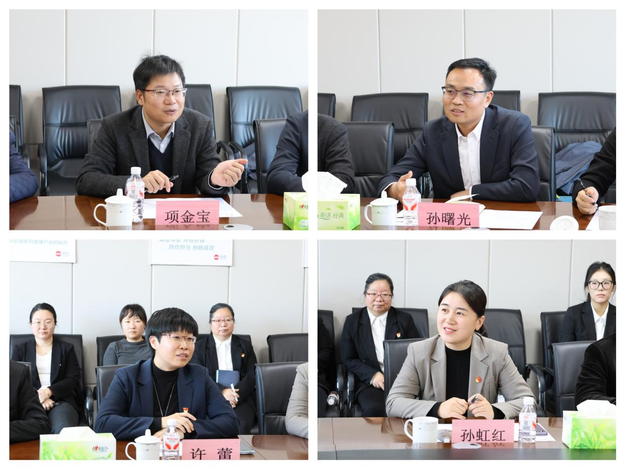 院长项金宝、党委书记孙曙光带队,副院长王毅、邢雷雷等一行6人赴哈药集团技术中心开展调研交流活动。哈药集团技术中心党委书记、院长许蕾,党委副书记、纪委书记孙虹红等领导热情接待。